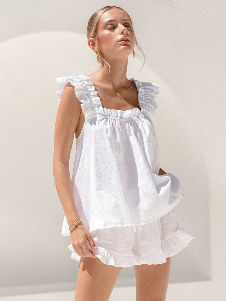 Pijama de dos piezas con tirantes de volante