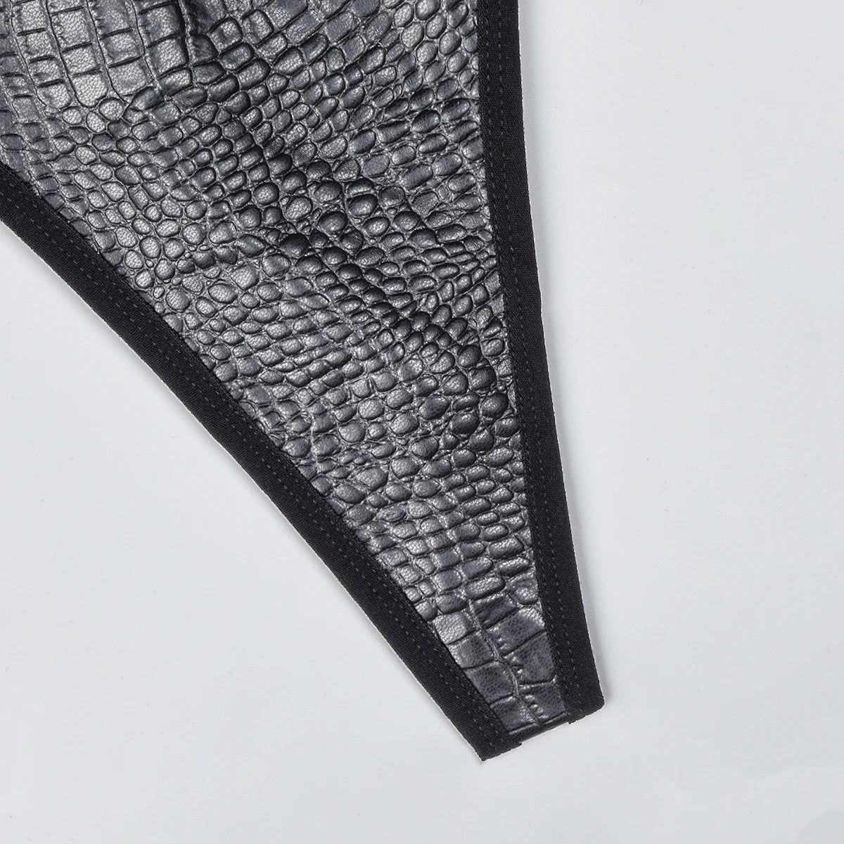 - Body de mujer - Lencería de cuero sintético - Ribete de malla - Material: poliéster