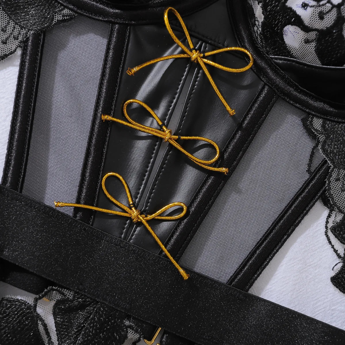 Body de encaje con bordado y lacitos dorados - Laurene.es