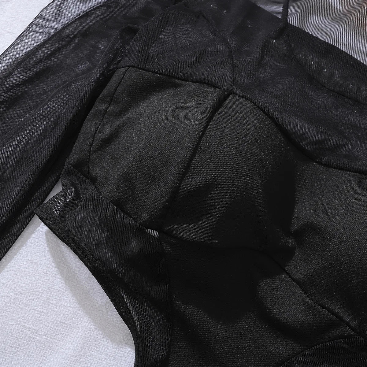 - Body de mujer - Lencería de malla - Ribete de reocrtes - Material: poliéster