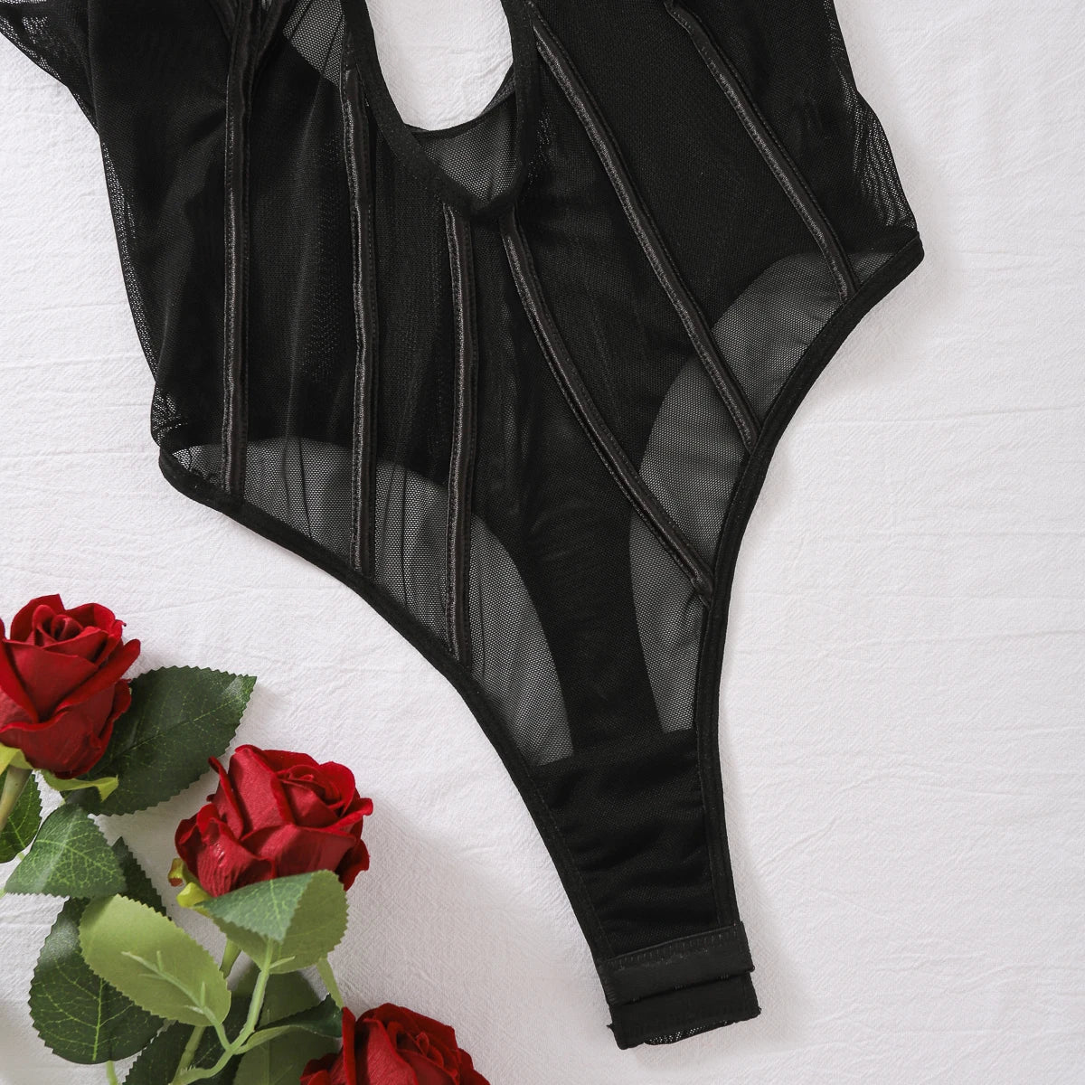 - Body de mujer - Lencería de malla - Ribete de recortes - Material: poliéster