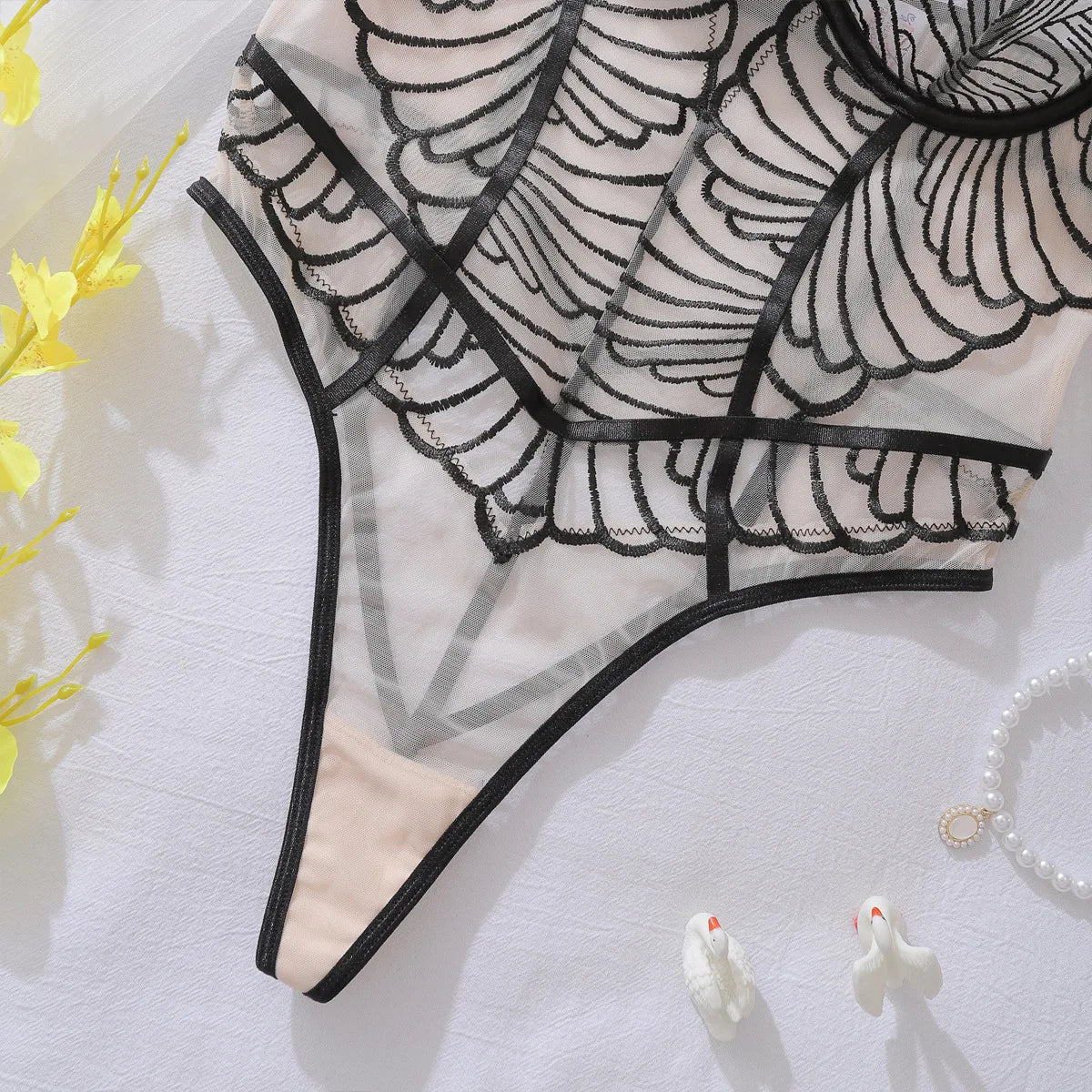 - Body de mujer - Lencería de encaje - Ribete de bordado - Material: poliéster