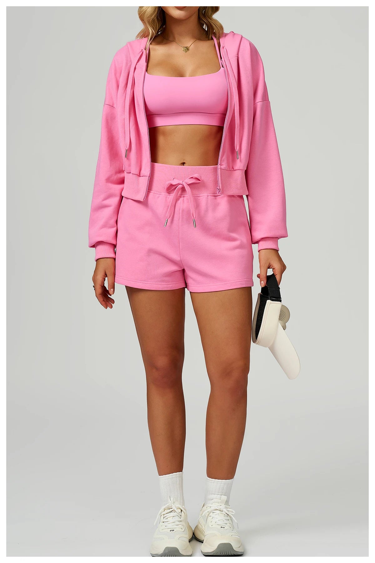 Conjunto deportivo con pantalones cortos y sudadera con capucha